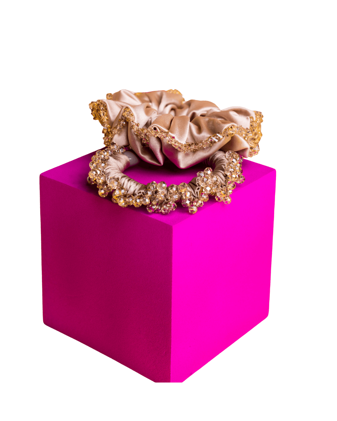 Luxuriously soft satin scrunchies accented with shimmering crystal details, designed to elevate everyday hairstyles with effortless elegance.